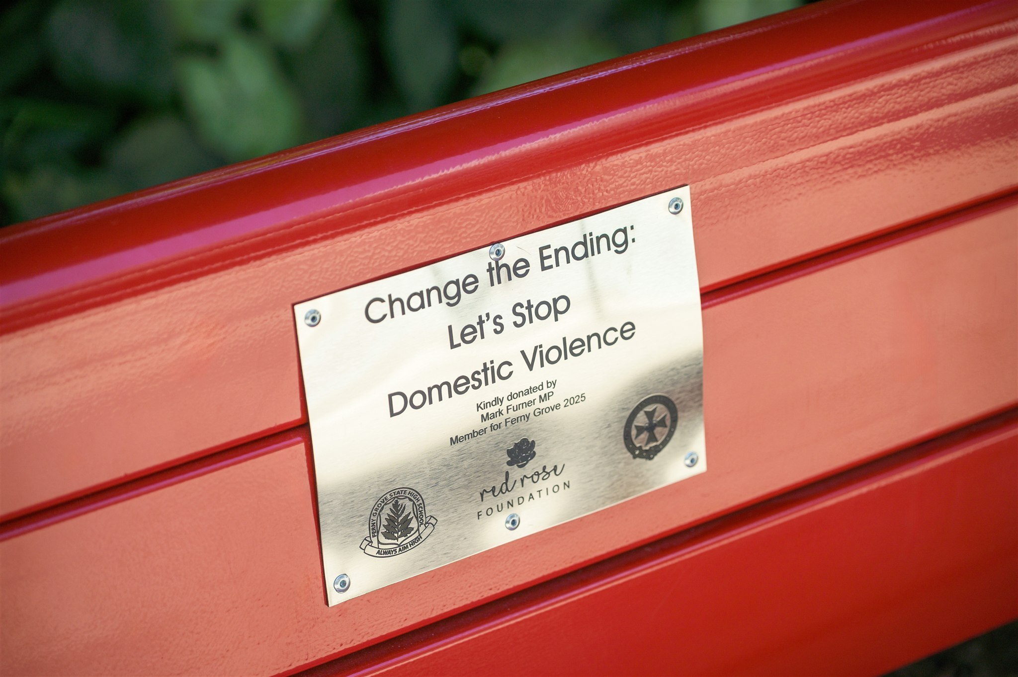 The Red Bench Project, led by the Red Rose Foundation, introduces permanent red benches into public spaces to raise awareness of domestic and family violence. Local State Member Mark Furner observed that while red benches existed in community spaces, none had been introduced into schools.