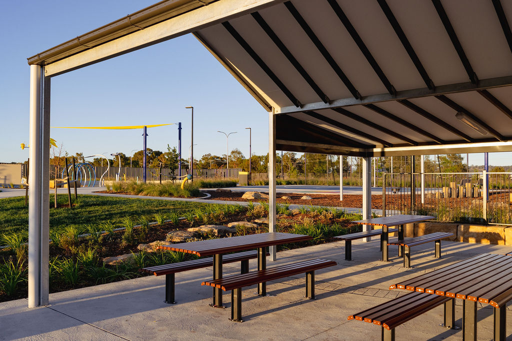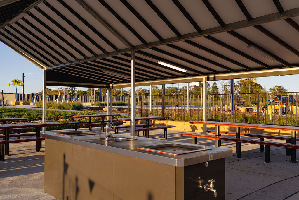 Working alongside The Village Building Co, GX Outdoors supplied Akora Cantilever Shelters, Citistyle Table Setting and Park Seats, Reviva Drinking Fountains, Integra EX Bin Enclosures, and an Edge BBQ. Designed for high-use public environments, these aluminium products provide durable, low-maintenance solutions that enhance usability while contributing to a cohesive, welcoming park setting for families and the wider community.